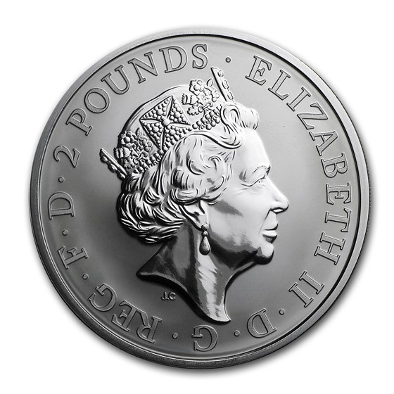 The 2016 Two pounds sterling is part of a series of Two ounce silver Britannia coins struck from 1997-Present. The specific variety is Britannia. Designated as a Business (MS) strike, this coin is made of Silver. Reverse: The iconic goddess standing tall in her Corinthian helmet and wielding a trident and shield to safeguard the British nation.
