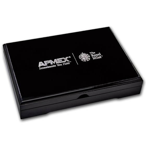 Features a stunning APMEXclusive® 1 oz Silver Reverse Proof Britannia - a first time ever striking by the Royal Mint. Only 500 total coins produced worldwide! Each coin contains 1 oz of .999 fine Silver for a total of 2 oz of Silver. Attractively housed in a beautiful black display case that features both The Royal Mint and APMEX logos.